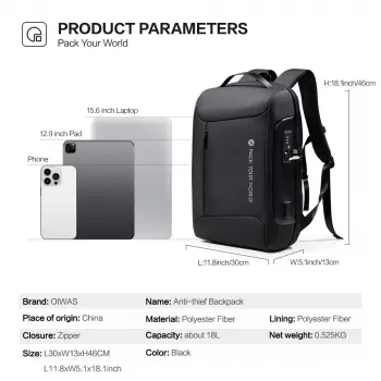 Men’s TSA Anti-Theft Laptop Backpack 14–17 Inch Travel & School Bag